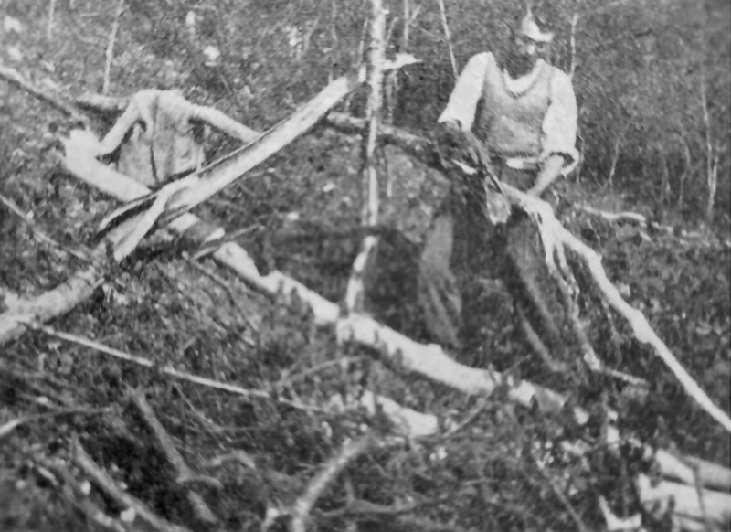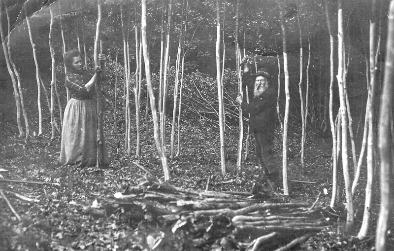 (1) Maria und Barthel Röhl beim Loheschälen im Kermeter.